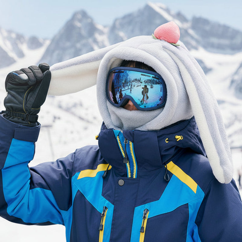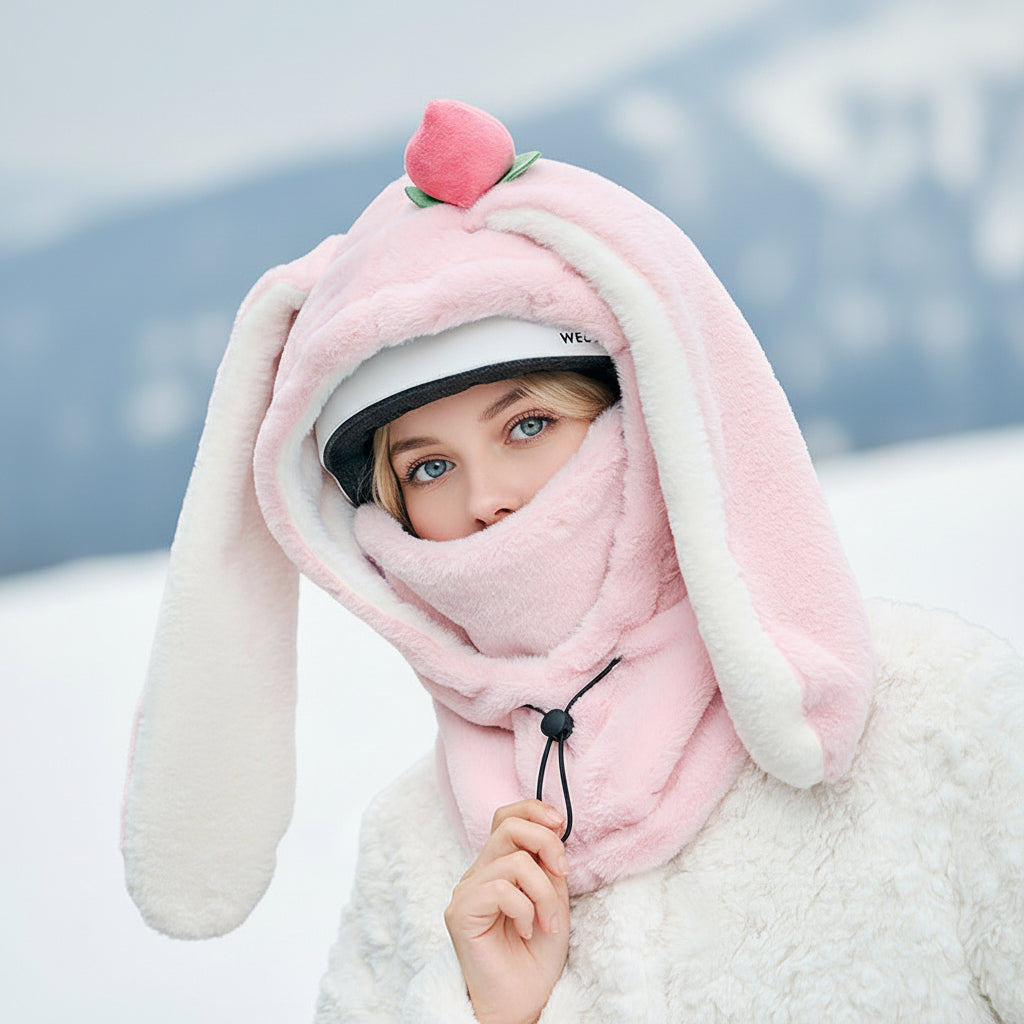 Hela huvud, ansikte och hals är täckta av tjock, mjuk fleece som håller vinden ute och värmen inne.