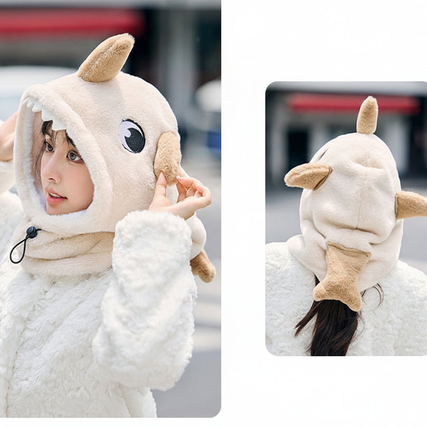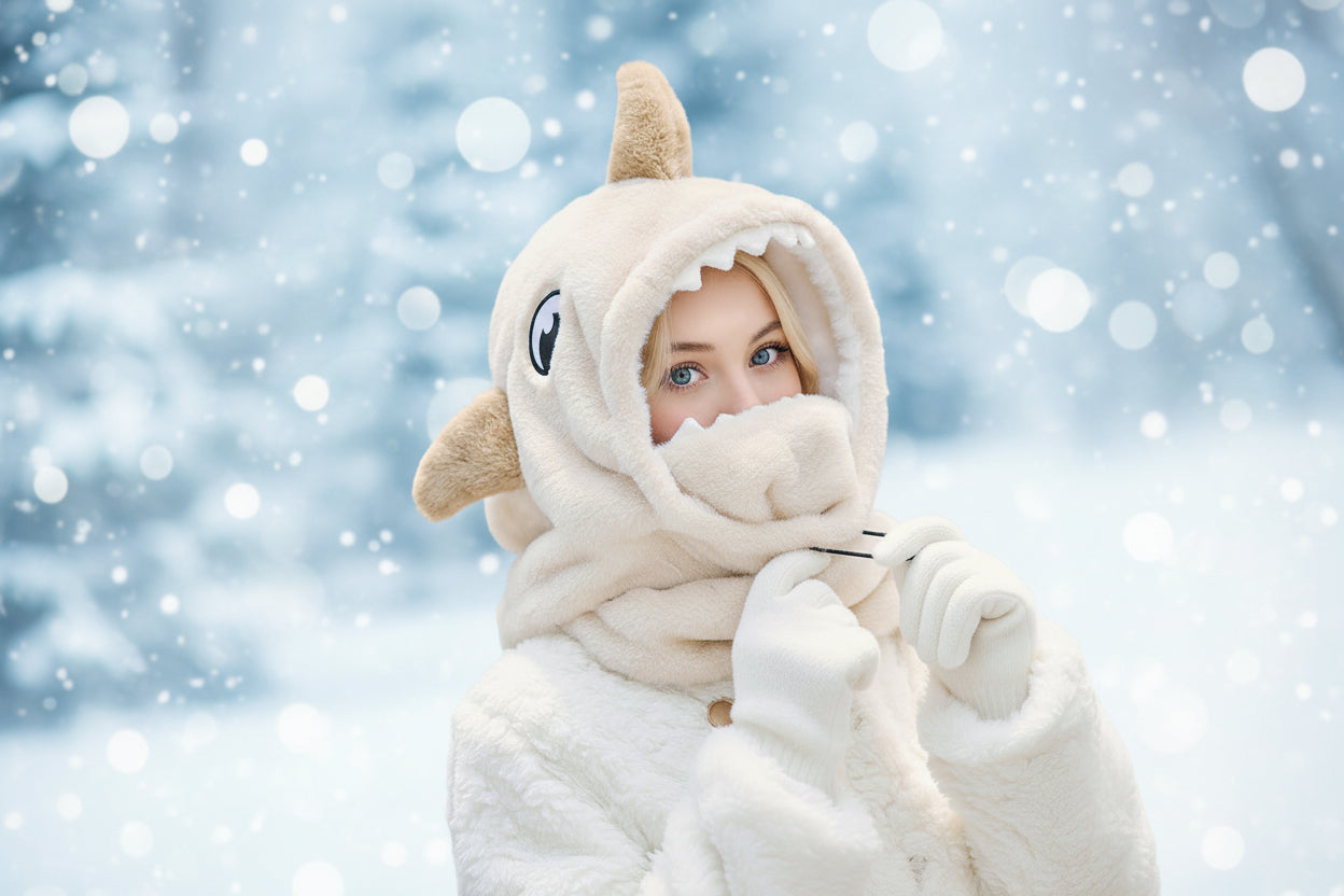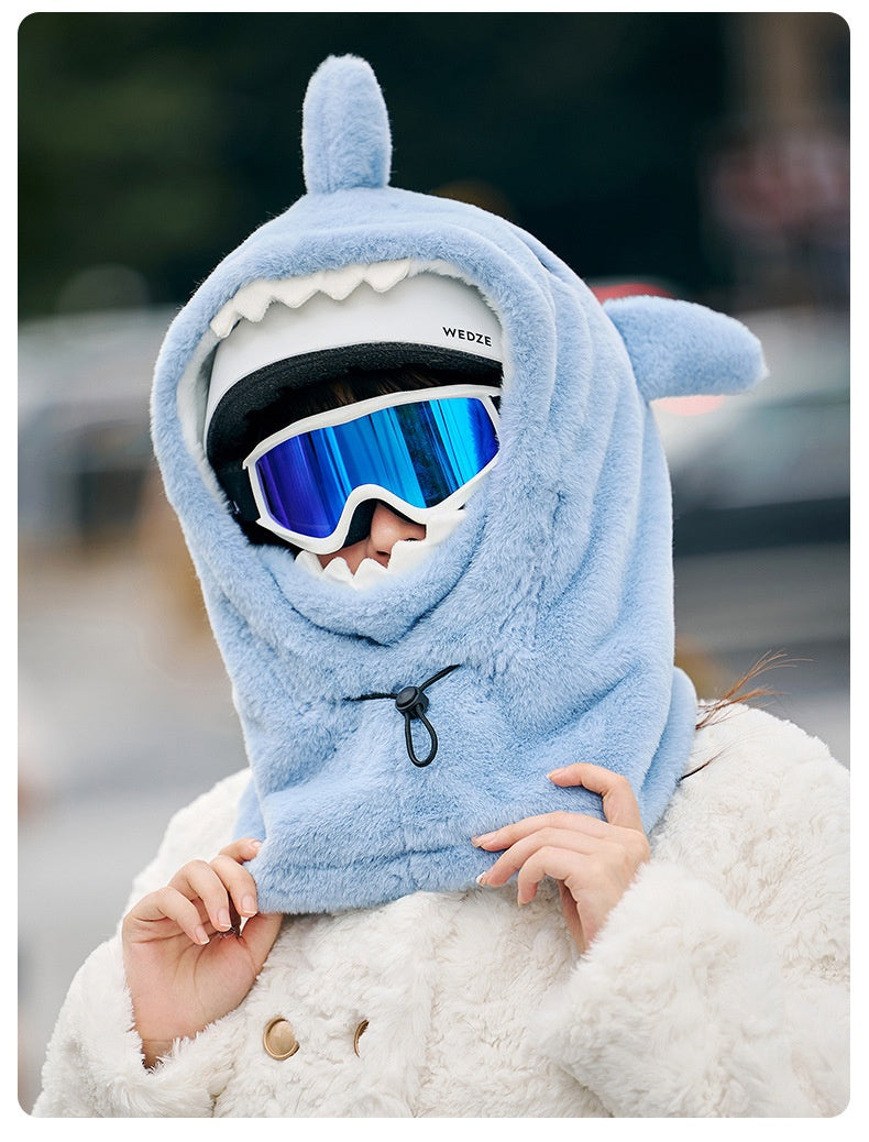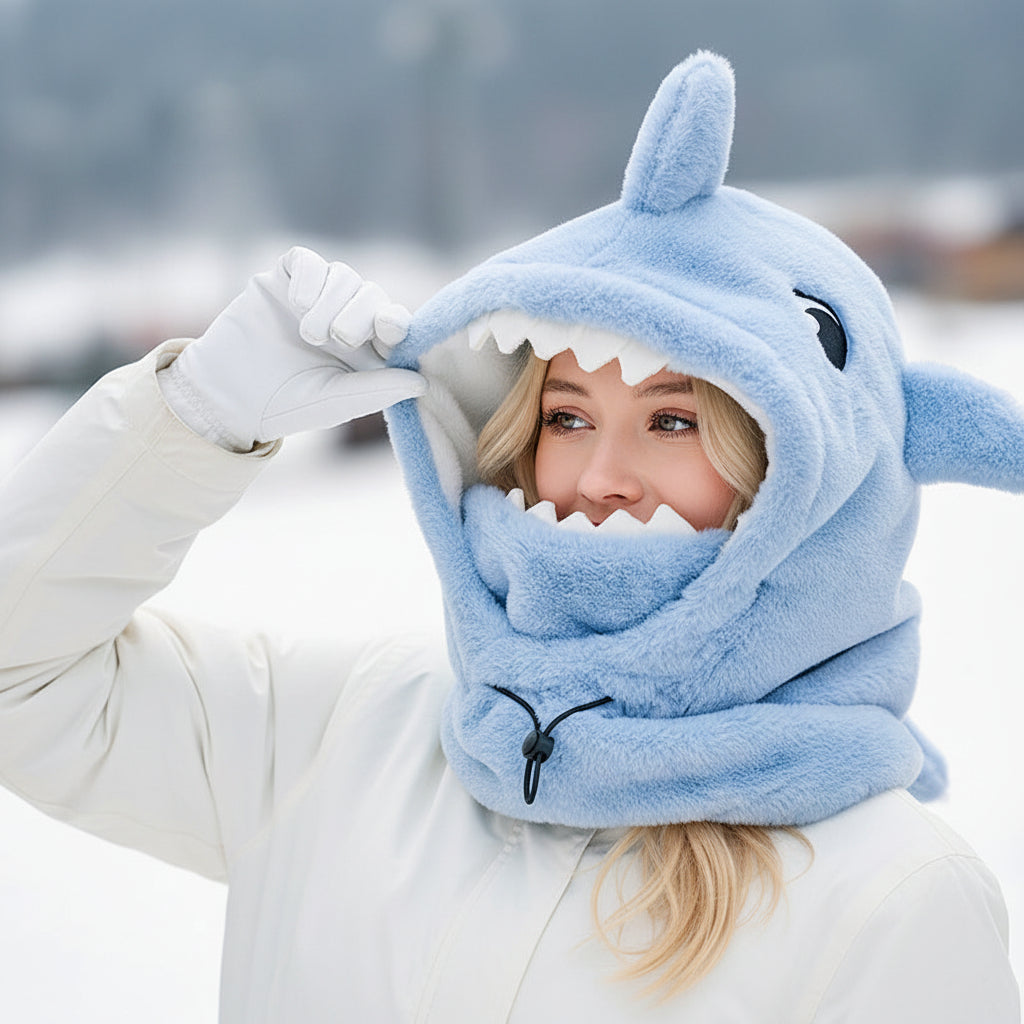 3D-hajdesign med fenor och tänder gör huvan mer som en rolig utklädnad än ett måsteplagg.
