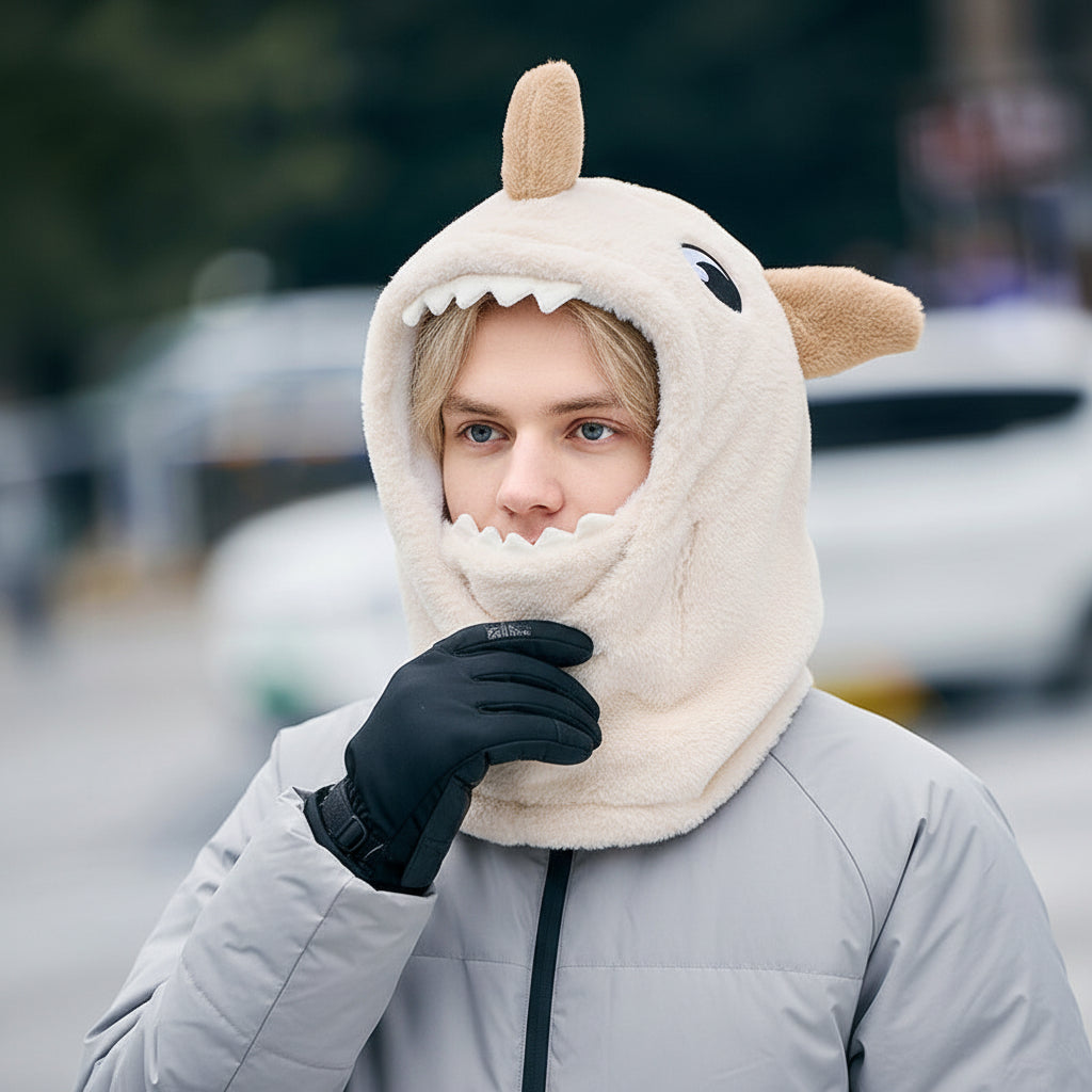 Hela huvud, ansikte och hals är täckta av tjock, mjuk fleece som håller vinden ute och värmen inne.